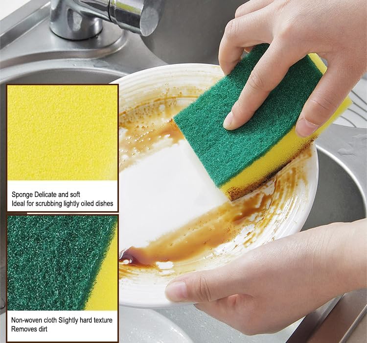 Kitchen Cleaning Sponges 15 Pack Dual-Sided Dish Scrubbing Sponges are designed to provide efficient cleaning for dishes, kitchen surfaces, and cookware. The dual-sided sponge combines a soft absorbent foam layer with a scrubbing surface to help remove grease and stubborn food residue.
