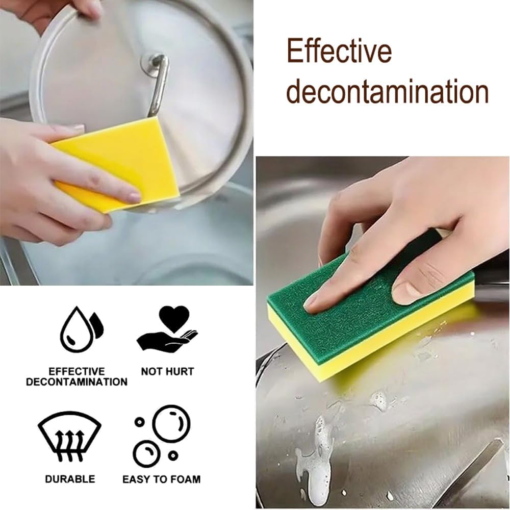These kitchen cleaning sponges are suitable for cleaning plates, utensils, glassware, and kitchen appliances. The durable sponge material provides long-lasting use while maintaining effective cleaning performance.