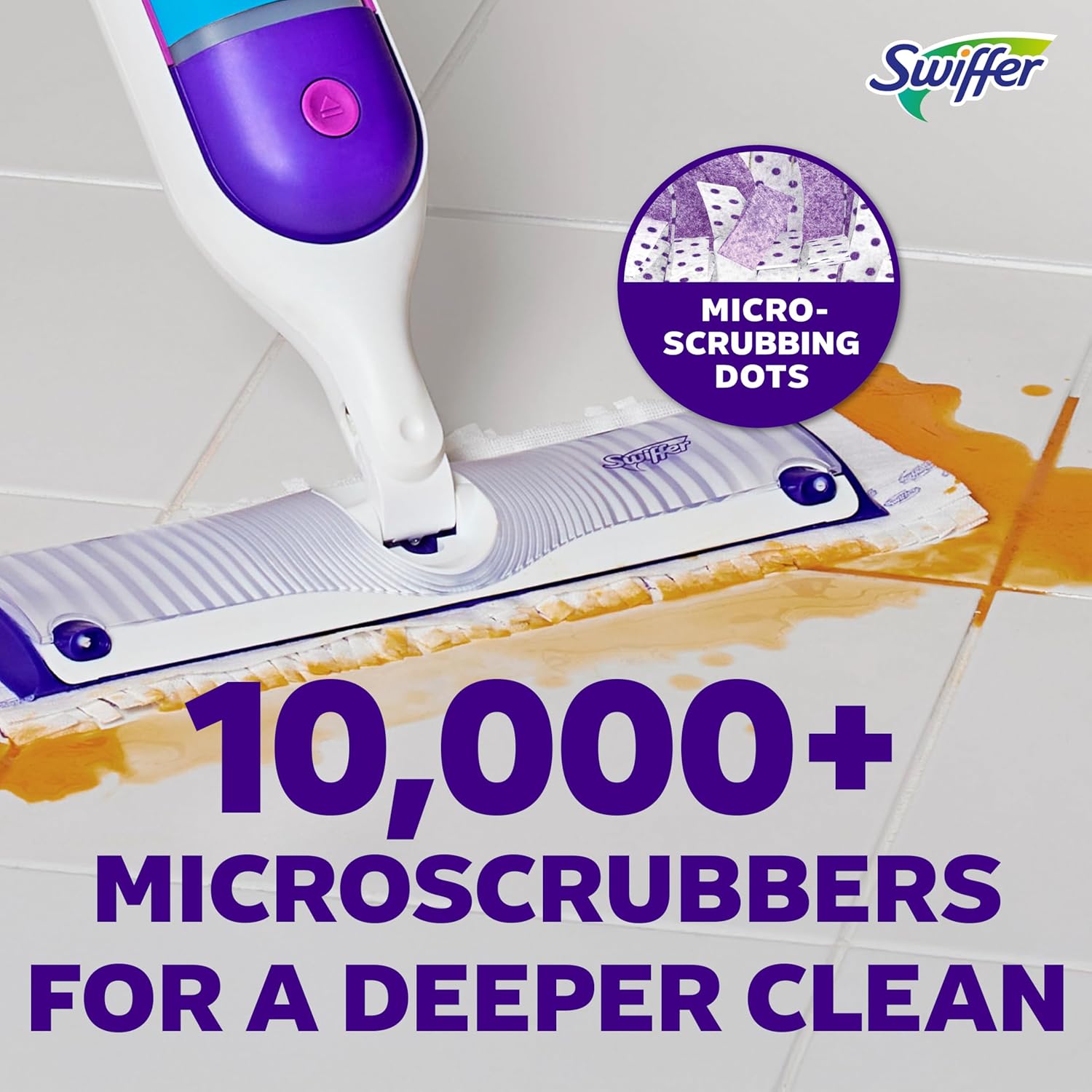 The Swiffer PowerMop Multi-Surface Floor Cleaning Mop Kit uses a spray system that distributes cleaning solution evenly across the floor while the absorbent pad lifts and traps dirt. This helps provide deep cleaning performance while keeping floors fresh and clean.